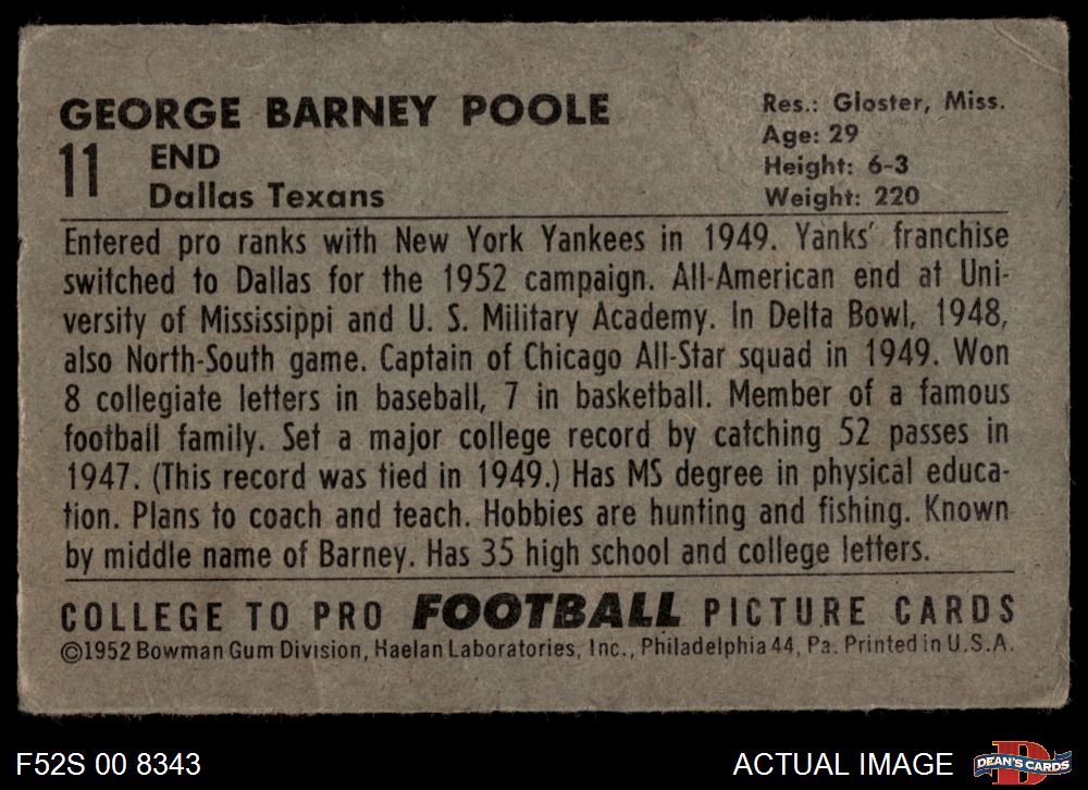 1952 Bowman Small #11 Barney Poole 2 - GOOD