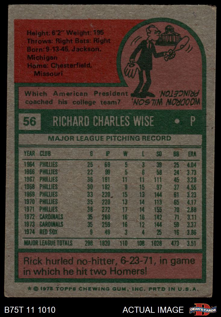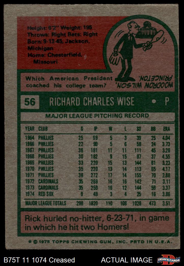1975 Topps #56 Rick Wise 2 - GOOD