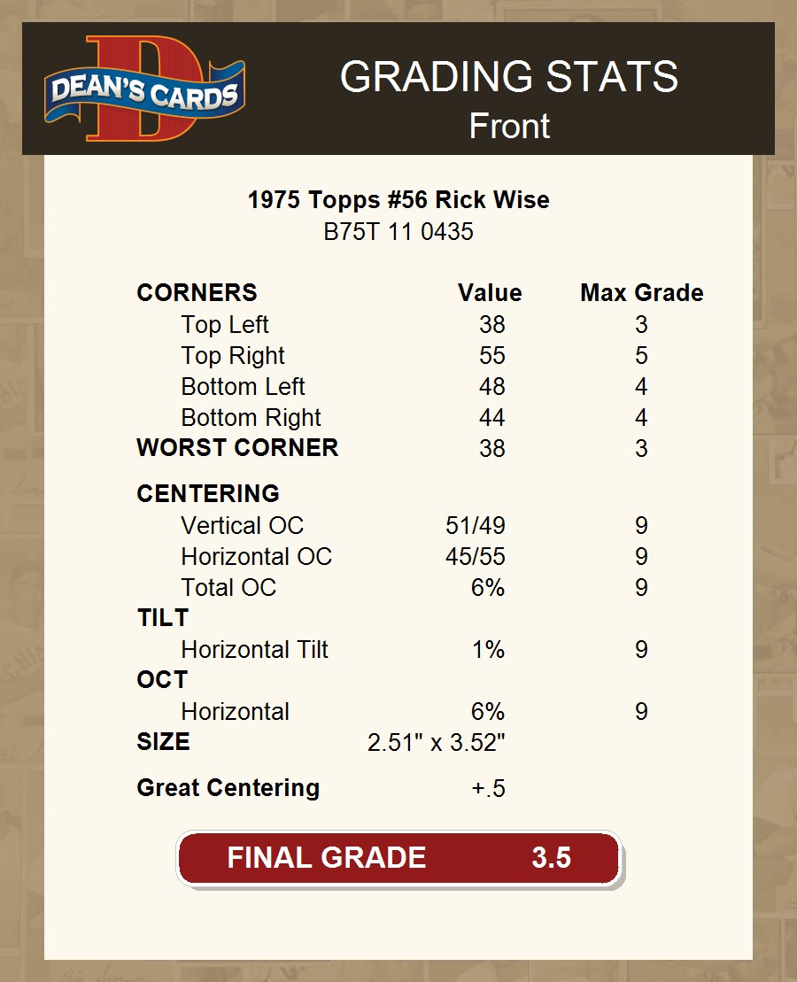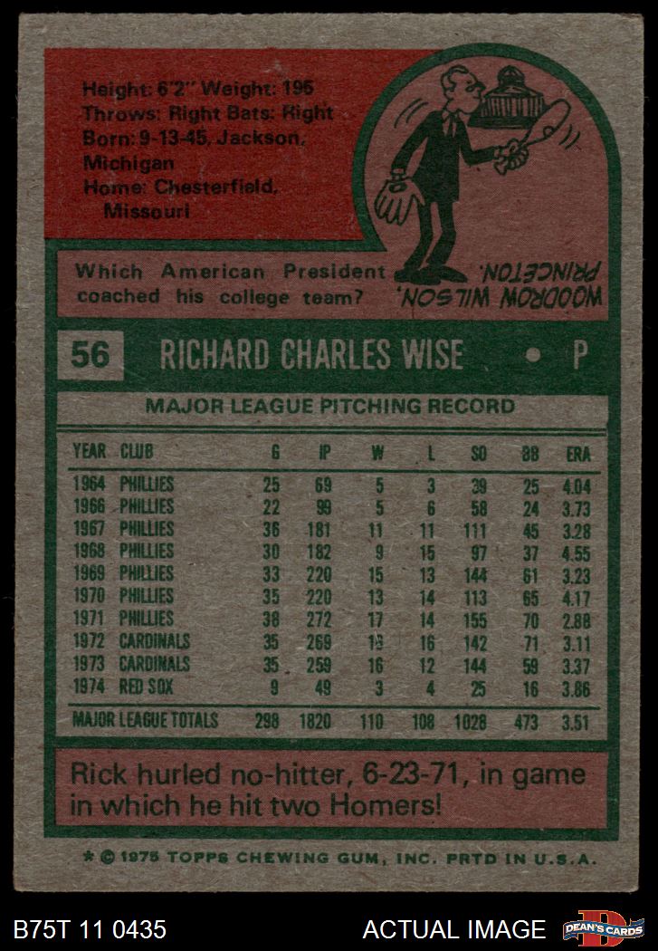 1975 Topps #56 Rick Wise 3.5 - VG+