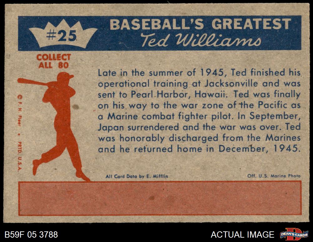 1959 Fleer Ted Williams (212 available)1959 Fleer Red Sox (269 available)