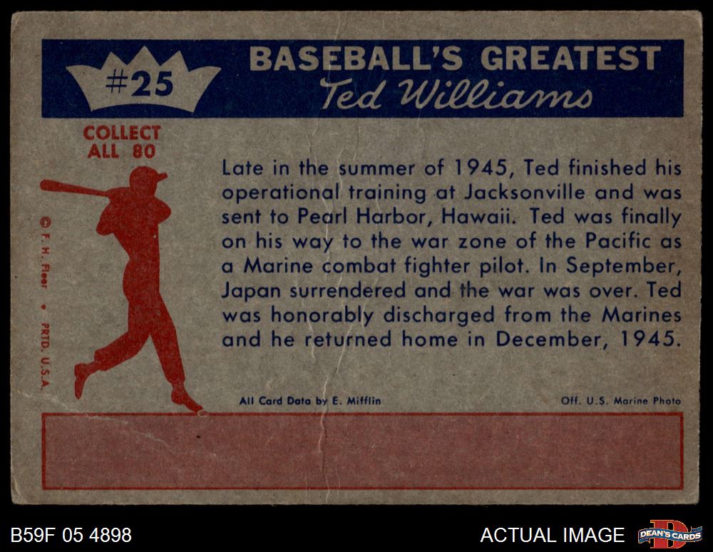 1959 Fleer #25 - Ted Williams Is Discharged 2 - GOOD