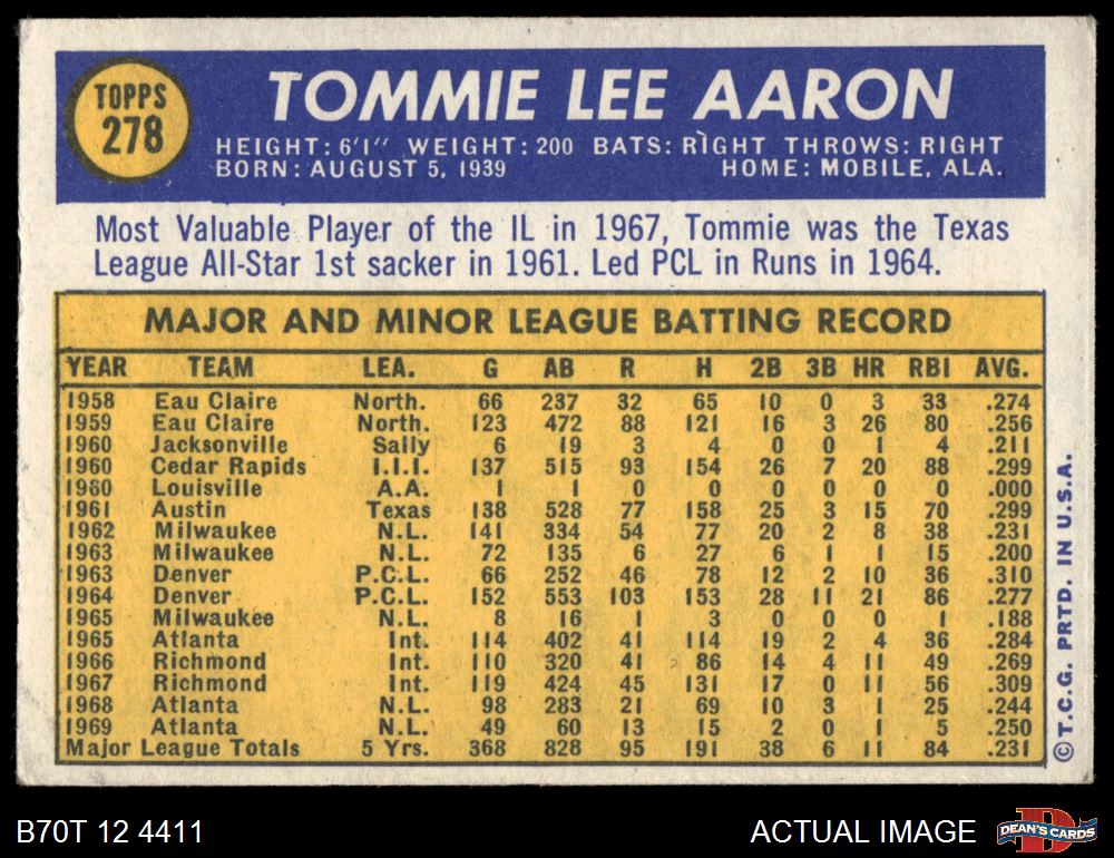1970 Topps #278 Tommie Aaron 4 - VG/EX