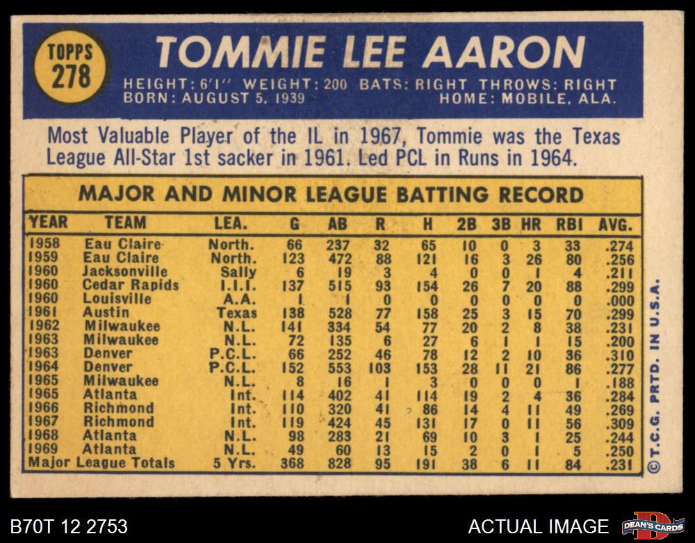 1970 Topps #278 Tommie Aaron 6 - EX/MT
