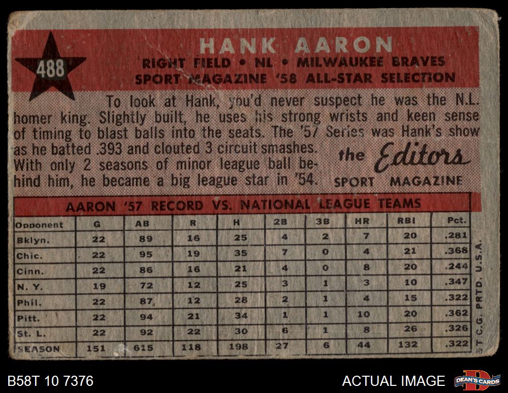 1958 Topps #488 - Hank Aaron All-Star 1 - POOR