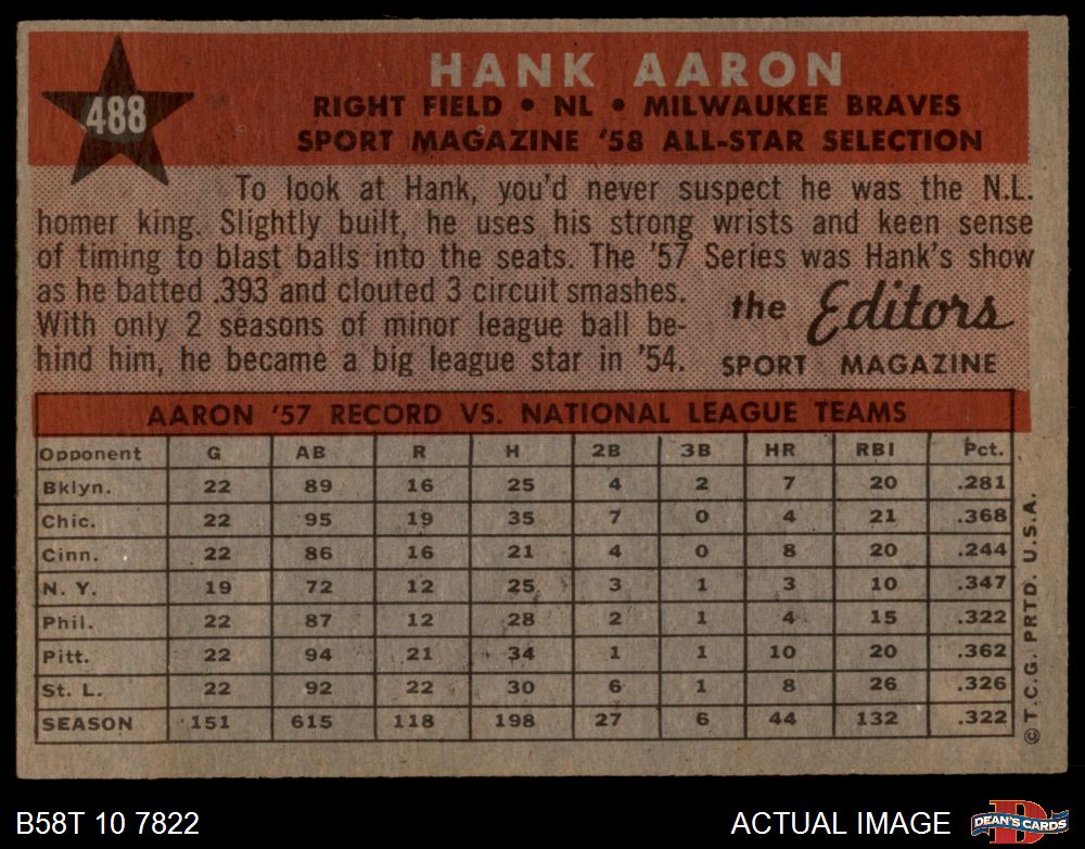 1958 1958 #488 - Hank Aaron All-Star 4 - VG/EX
