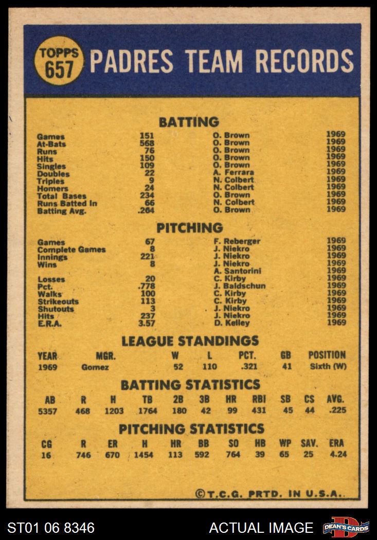 1970 Topps #657 Padres Team 5 - EX