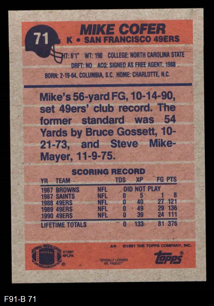 1991 Topps Football Cards (2,861 available)1991 Topps 49ers (136 available)