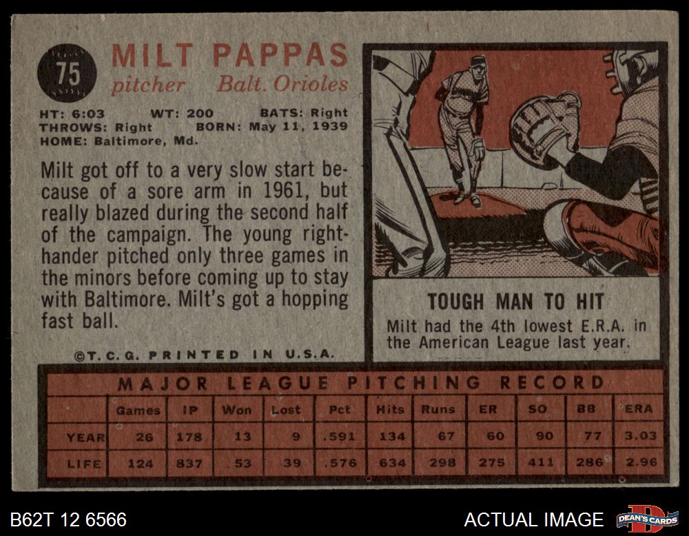 1962 Topps #75 Milt Pappas 2 - GOOD