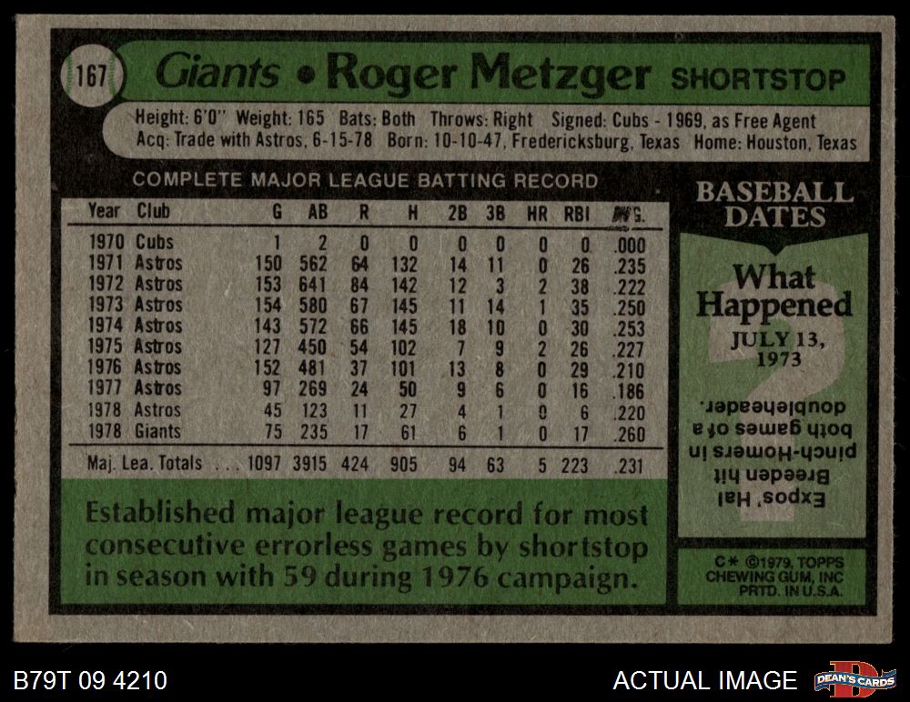 1979 Topps #167 Roger Metzger 4.5 - VG/EX+