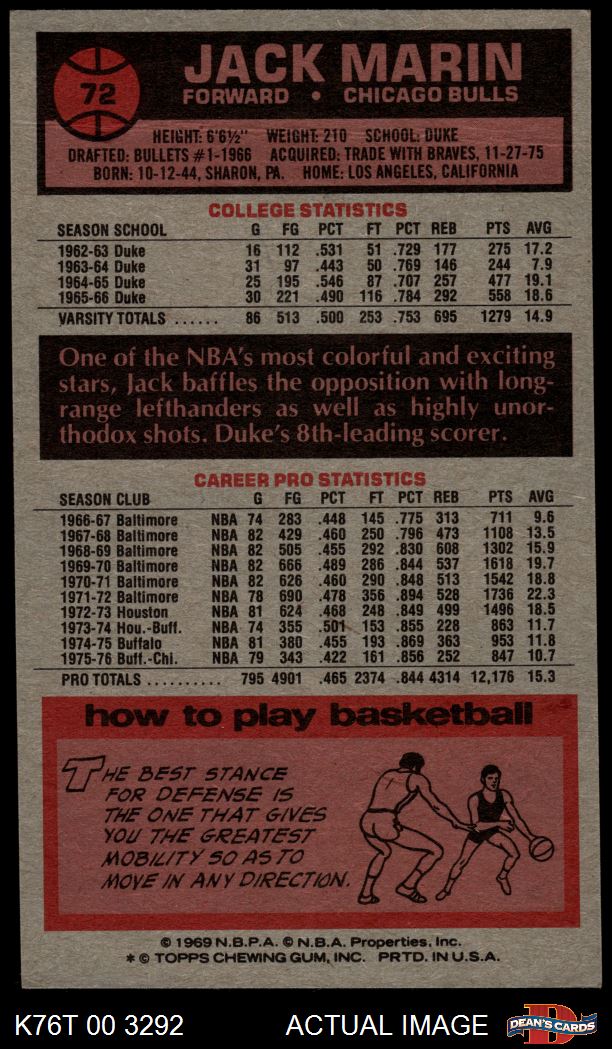 1976 Topps #72 Jack Marin