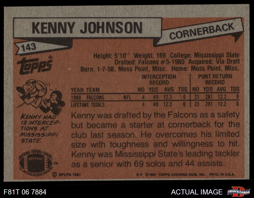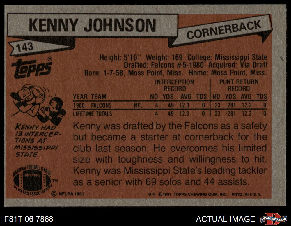 1981 Topps #143 Kenny Johnson 6 - EX/MT