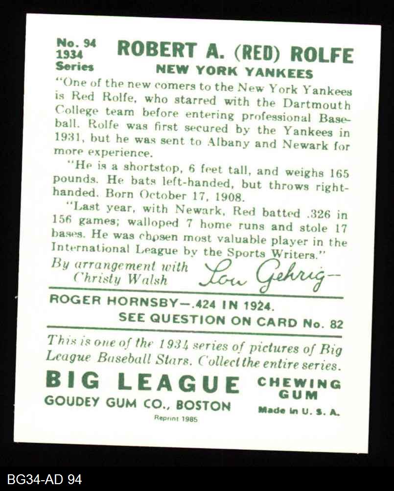 1934 Goudey Reprint (492 available)1934 Goudey Reprint Yankees (31 available)