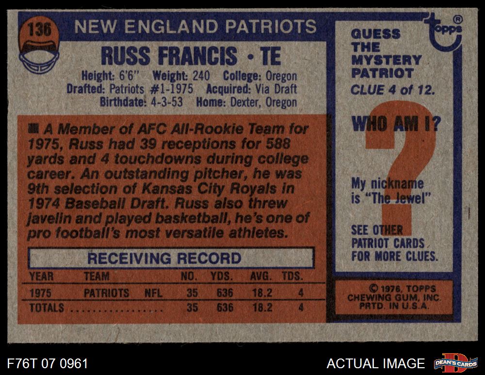 1976 Topps #136 Russ Francis 5 - EX