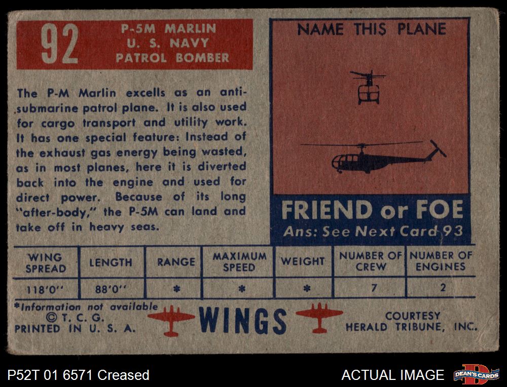 1952 Topps Wings #92  P5M Marlin Front Thumbnail