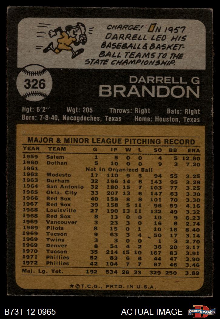 1973 Topps #326 Darrell Brandon 5 - EX
