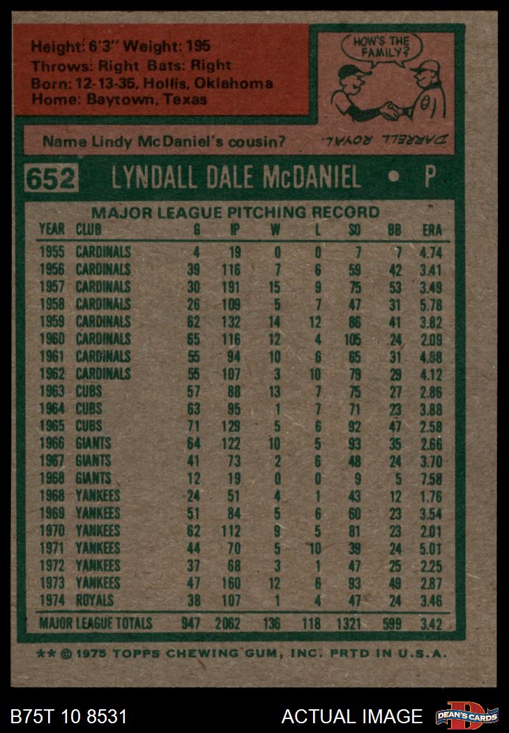 1975 Topps #652 Lindy McDaniel 5 - EX