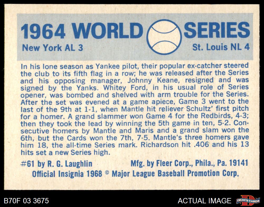 1970 Fleer World Series #61 - Bobby Richardson 1964 Cardinals vs. Yankees 7 - NM