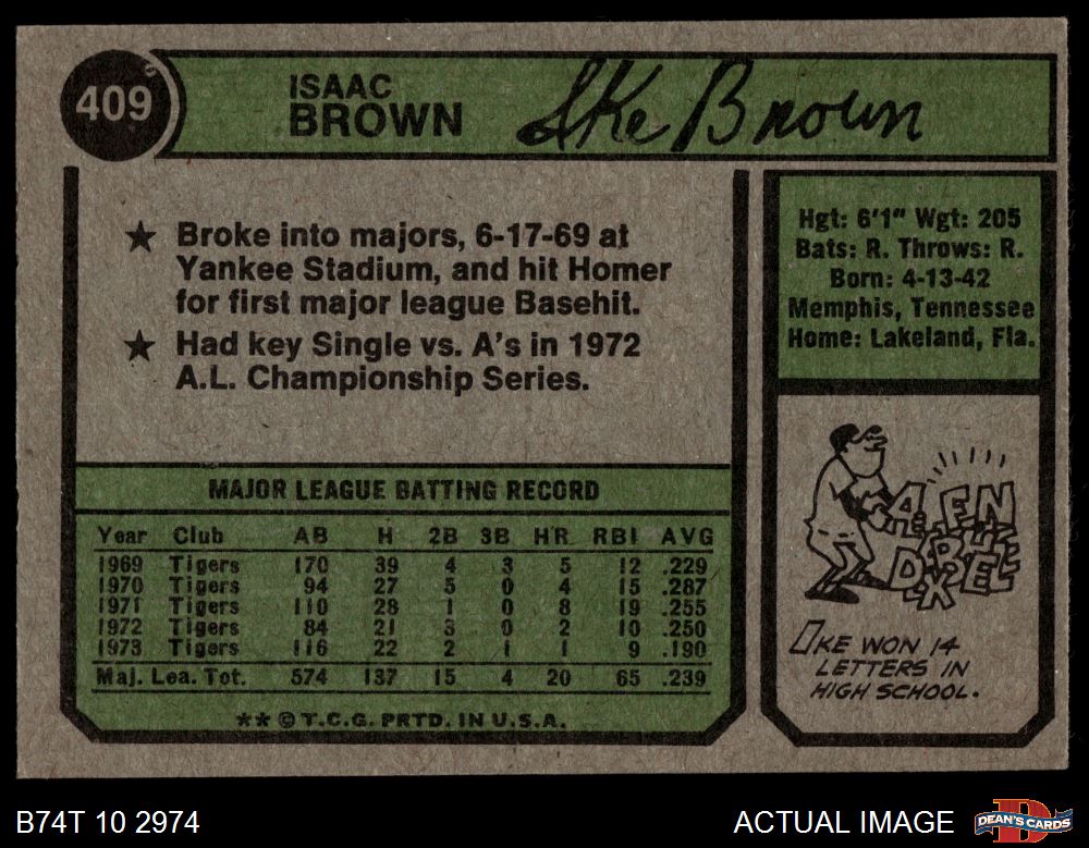 1974 Topps #409 Ike Brown 4 - VG/EX
