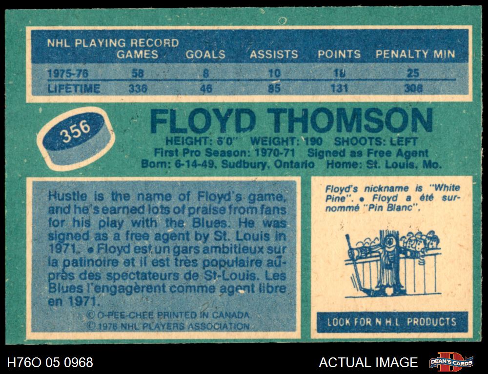 1976 O-Pee-Chee NHL #356 Floyd Thomson 7 - NM