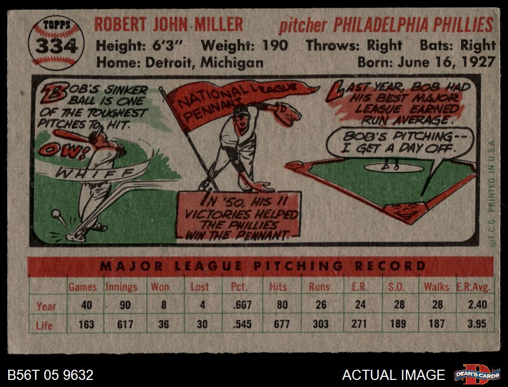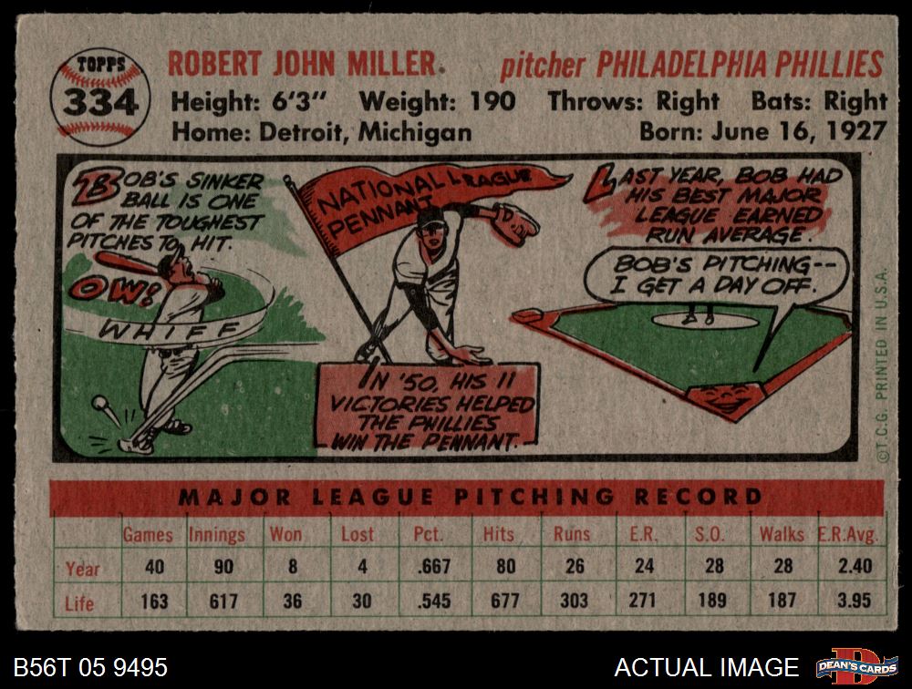 1956 Topps #334 Bob Miller 3 - VG