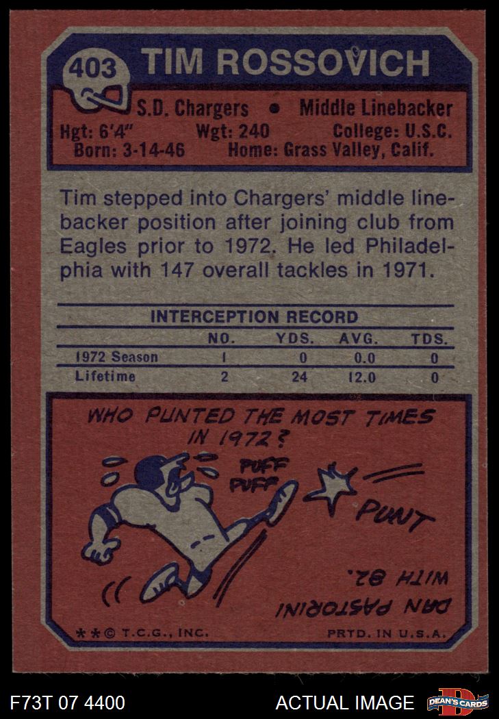 1973 Topps #403 Tim Rossovich 8 - NM/MT