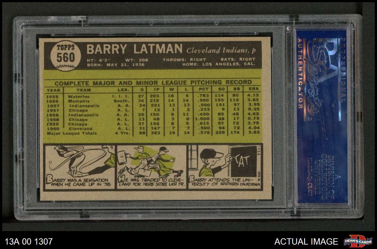 1961 Topps #560 Barry Latman PSA 8 - NM/MT