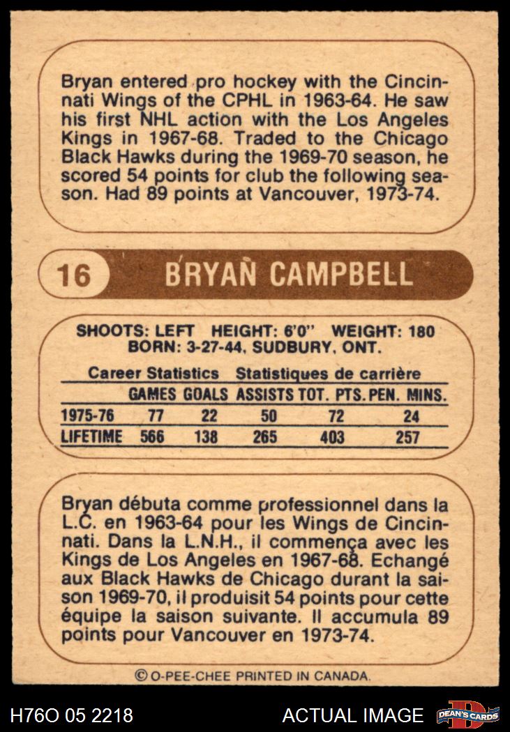 1976 O-Pee-Chee WHA #16 Bryan Campbell 7 - NM