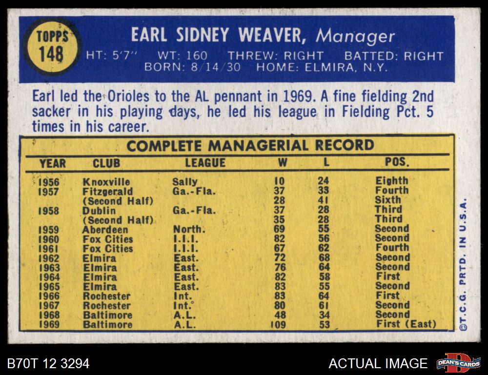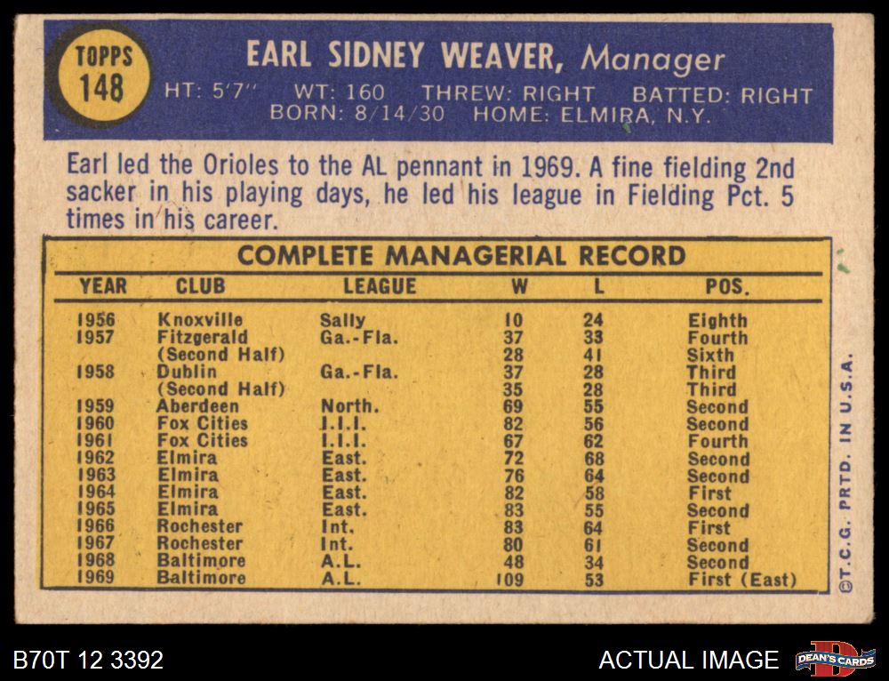 1970 Topps #148 Earl Weaver