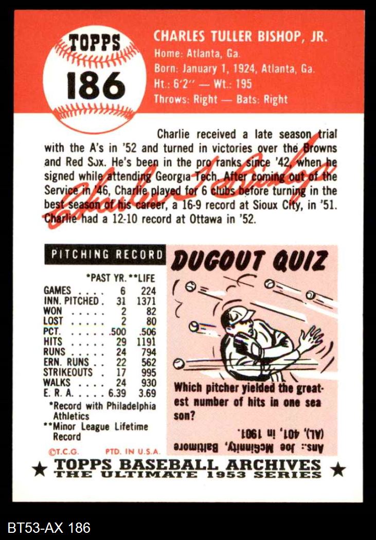 1953 Topps Archives #186 Charlie Bishop 8 - NM/MT