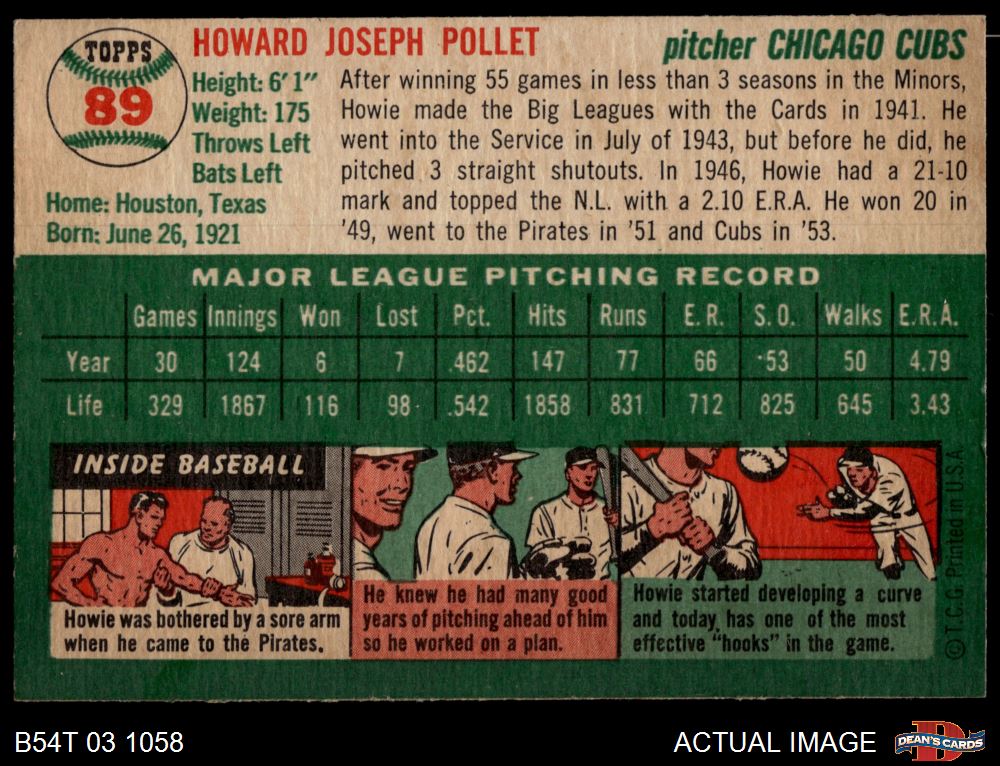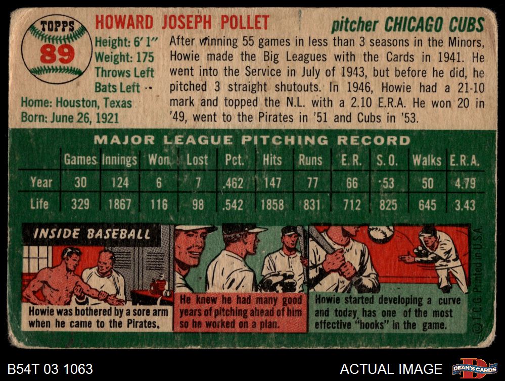 1954 Topps #89 Howie Pollet