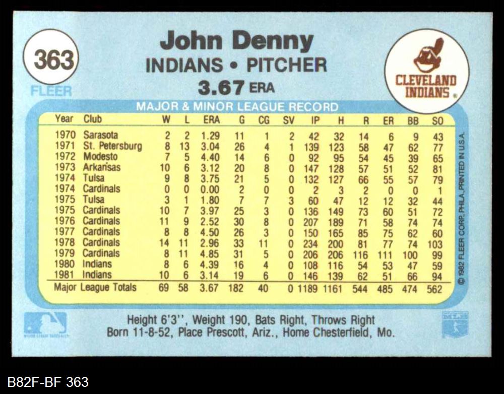 1982 Fleer #363 John Denny