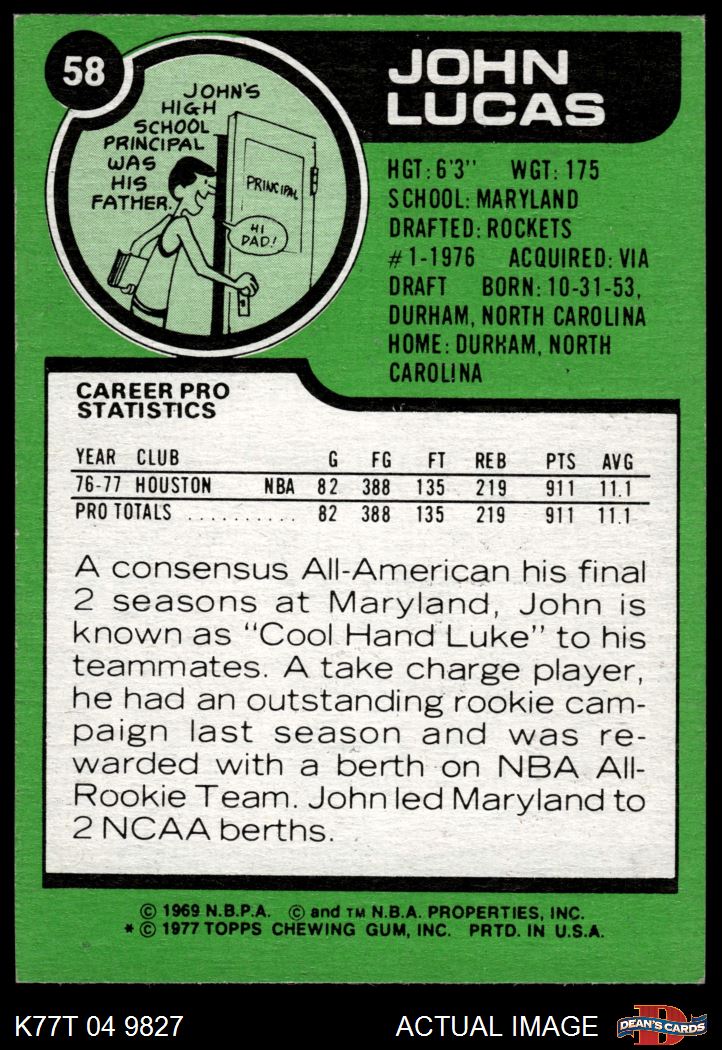 1977 Topps #58 John Lucas 6 - EX/MT