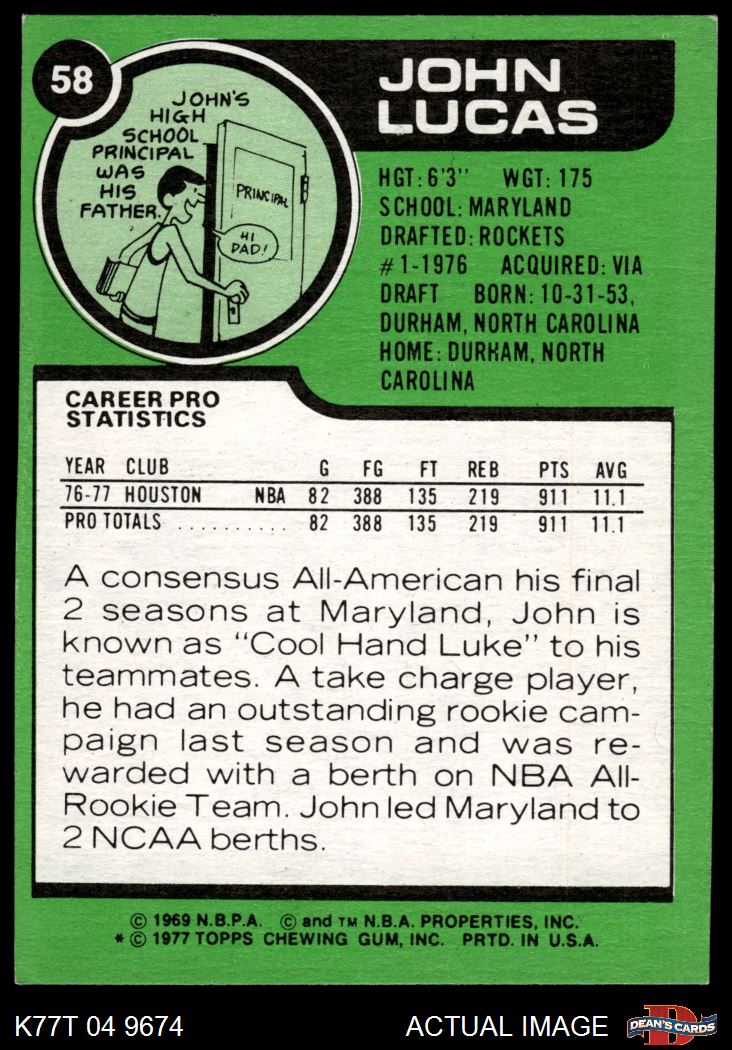 1977 Topps #58 John Lucas 7 - NM