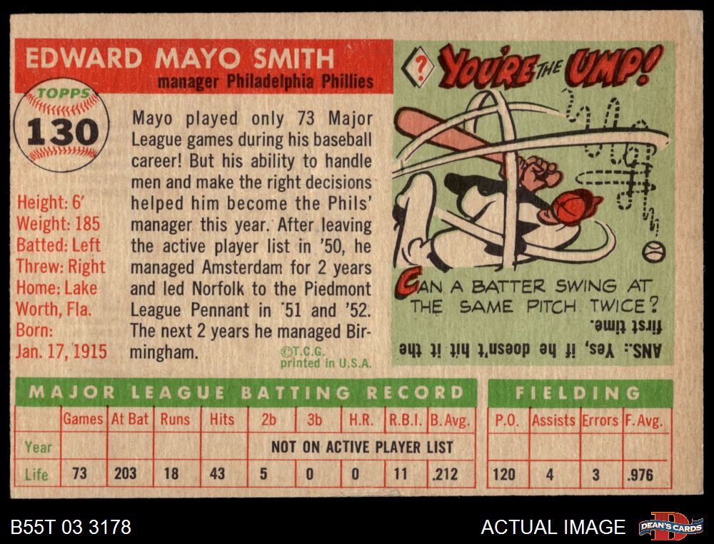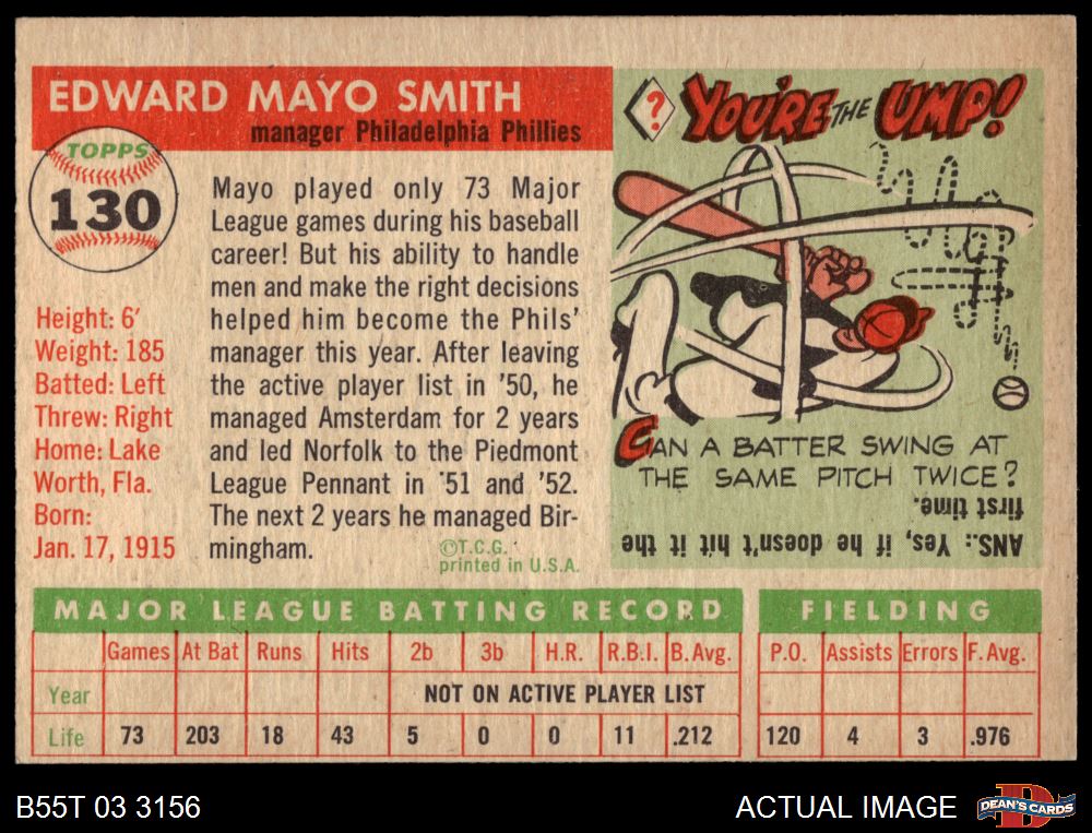 1955 Topps #130 Mayo Smith