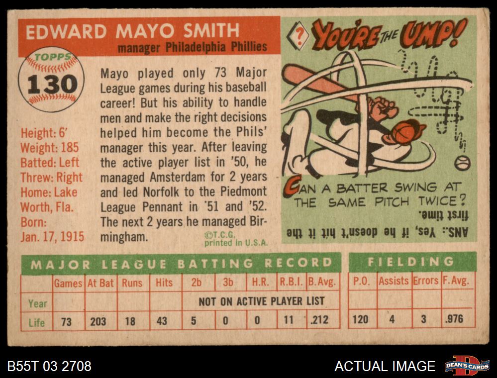 1955 Topps #130 Mayo Smith 2 - GOOD