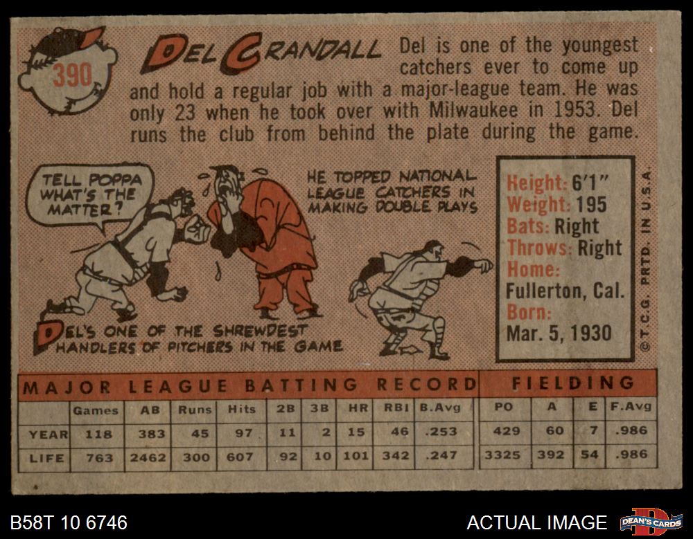 1958 Topps #390 Del Crandall 4 - VG/EX
