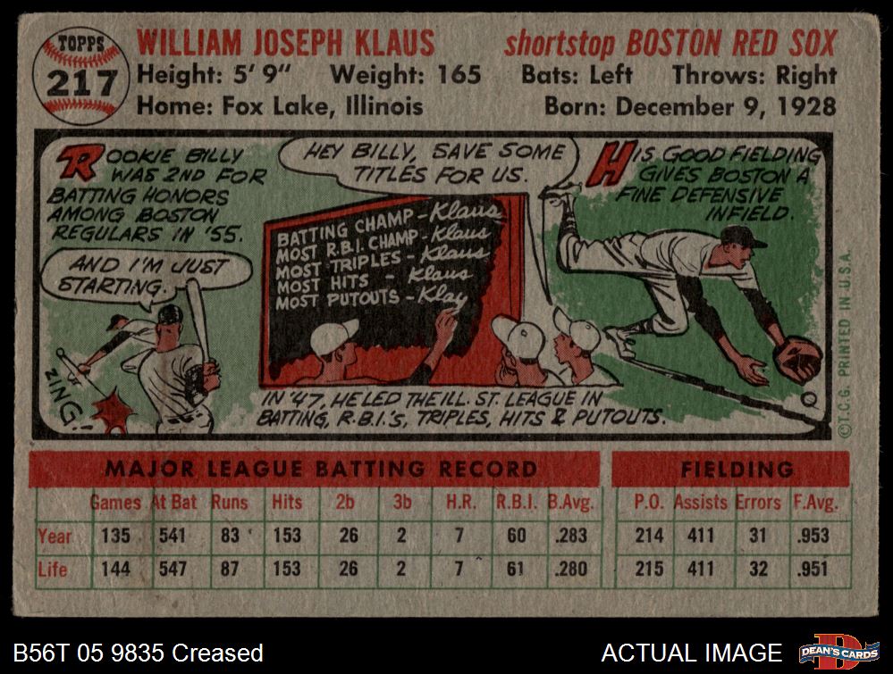 1956 Topps #217 Billy Klaus 2 - GOOD