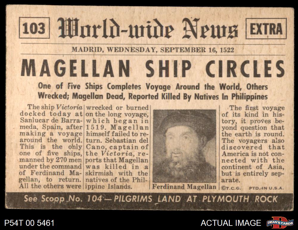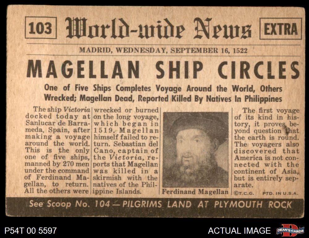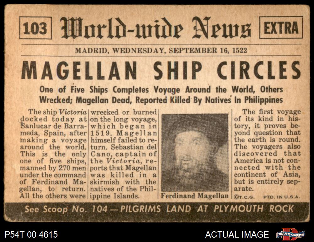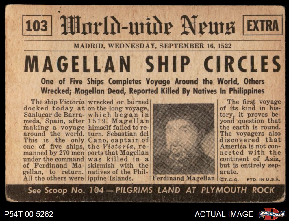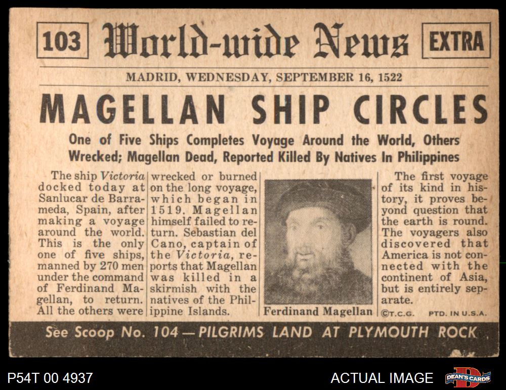 1954 Topps Scoop #103 xCOA Magellan's Ship Circles World