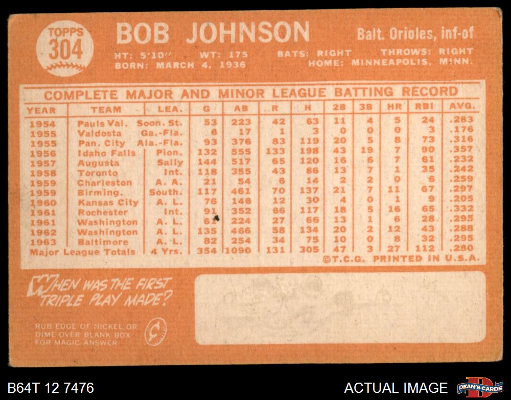 1964 Topps #304 Bob Johnson 1.5 - FAIR