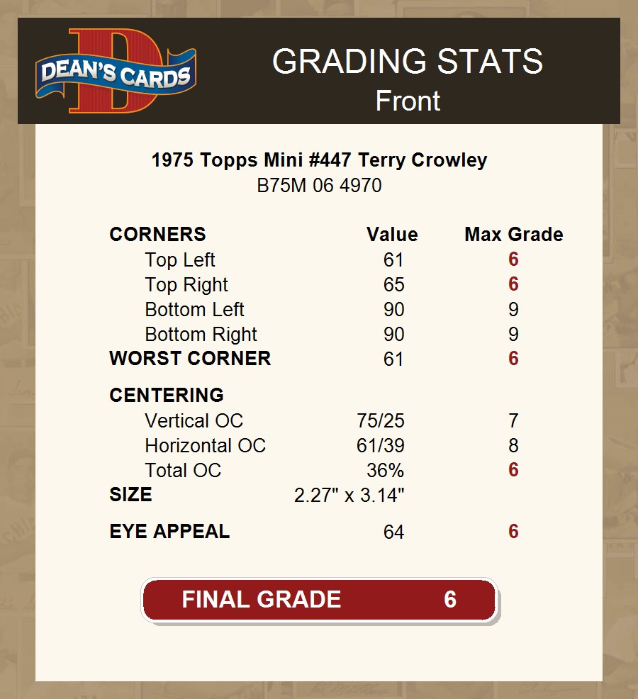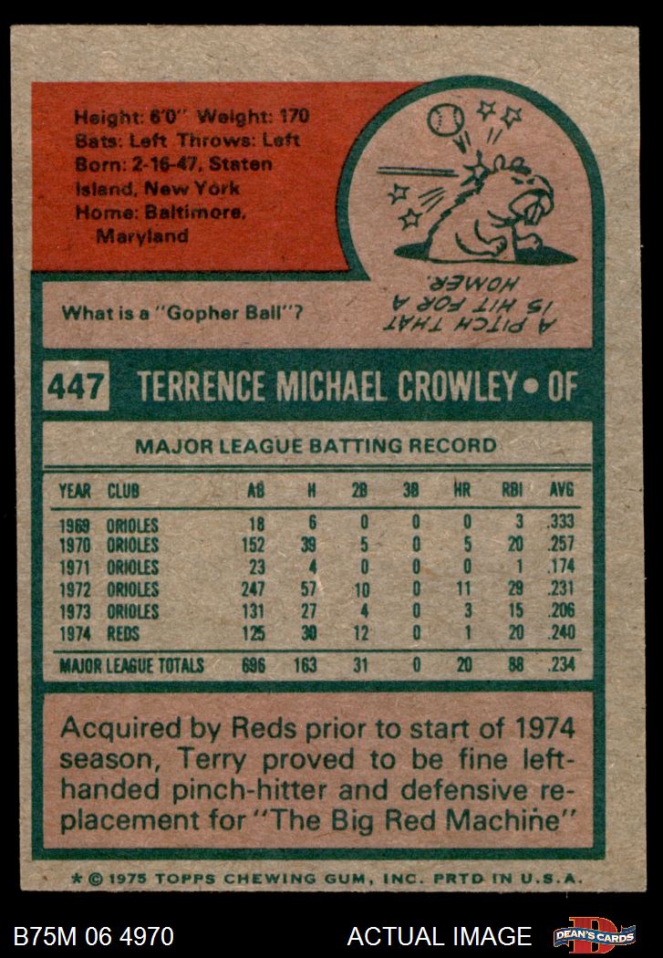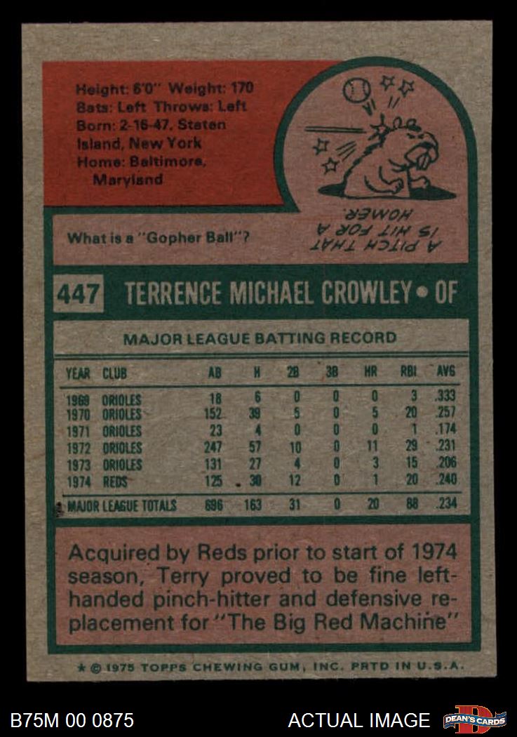 1975 Topps Mini #447 Terry Crowley 6 - EX/MT
