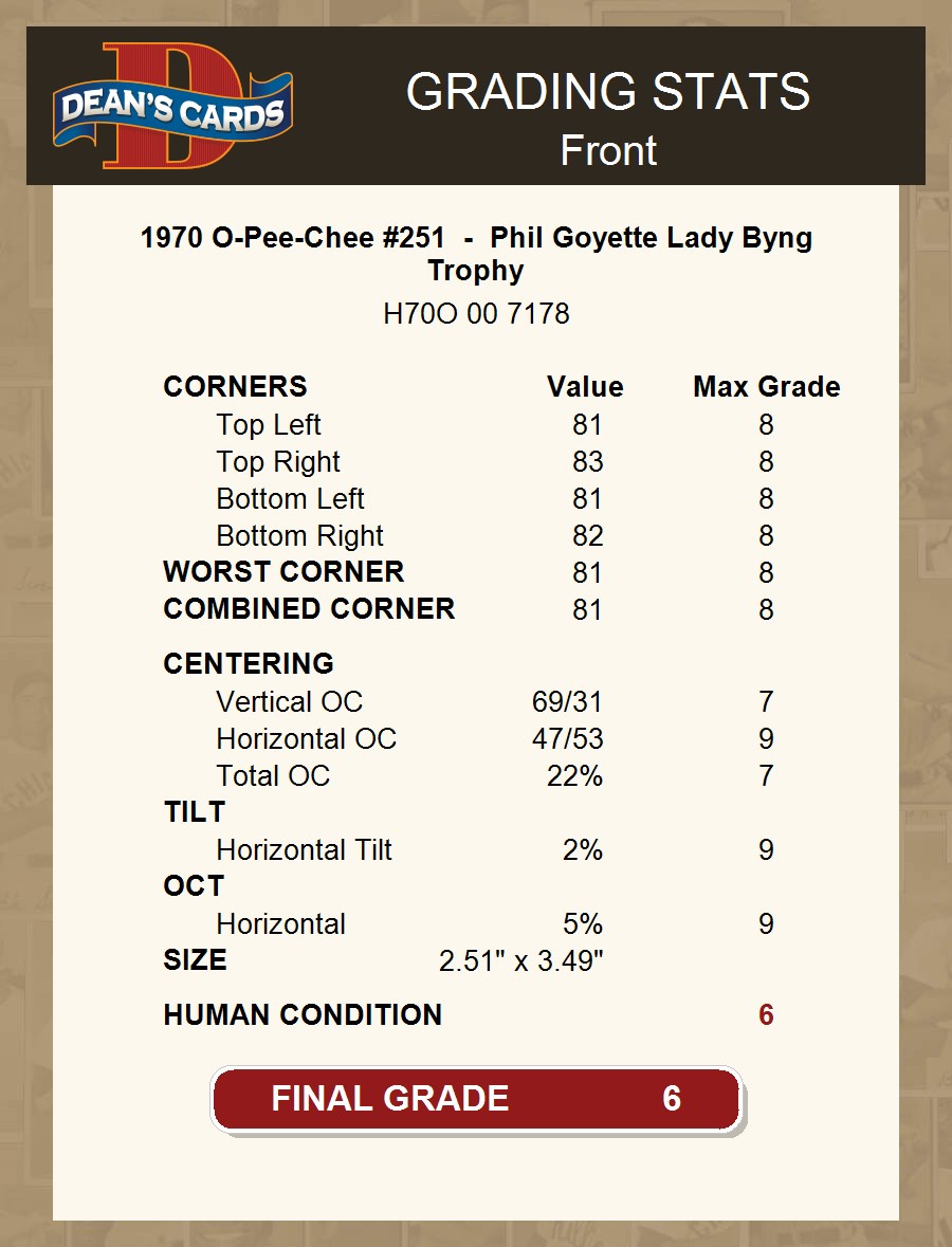 1970 O-Pee-Chee #251 Lady Byng Trophy