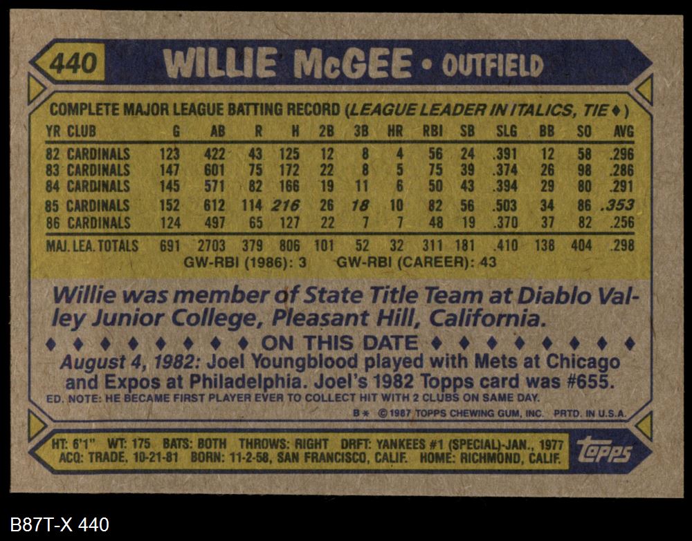 1987 Topps #440 Willie McGee