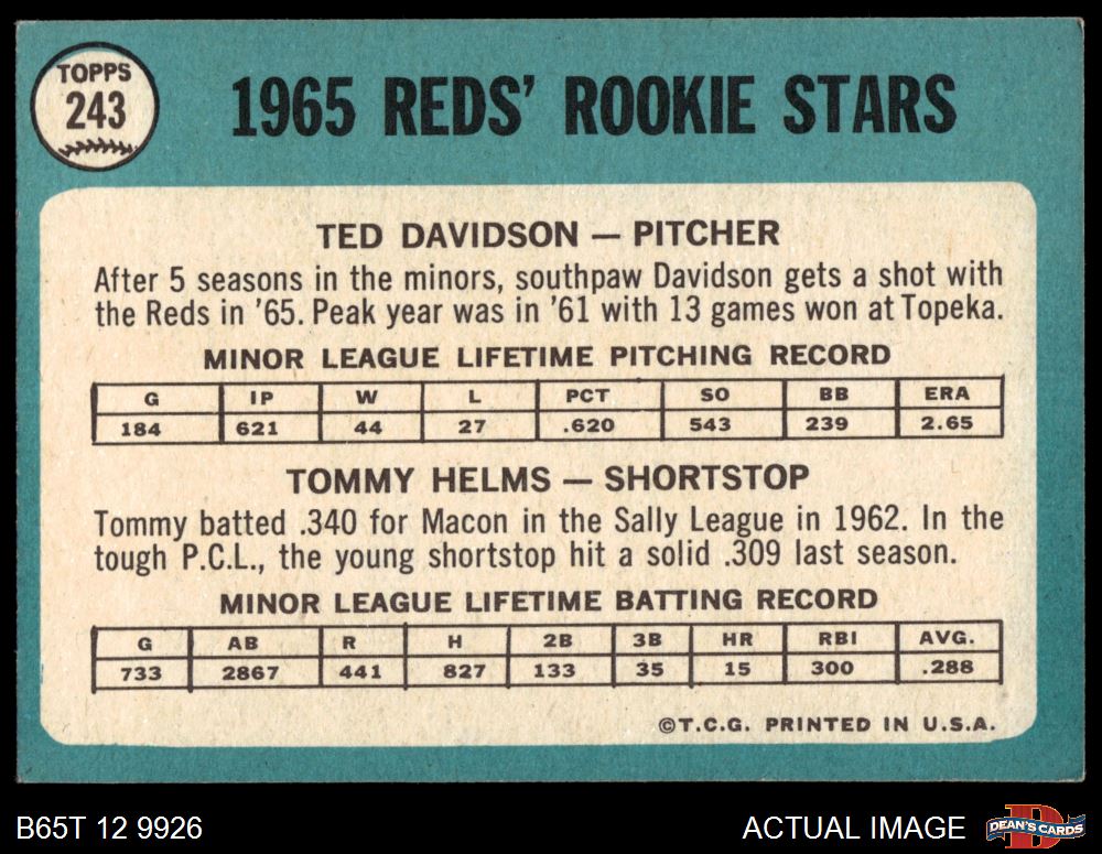 1965 Topps #243 - Tommy Helms / Ted Davidson Reds Rookies 5 - EX
