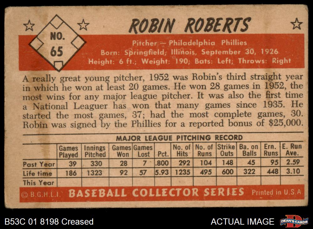 1953 Bowman #65 Robin Roberts 2 - GOOD