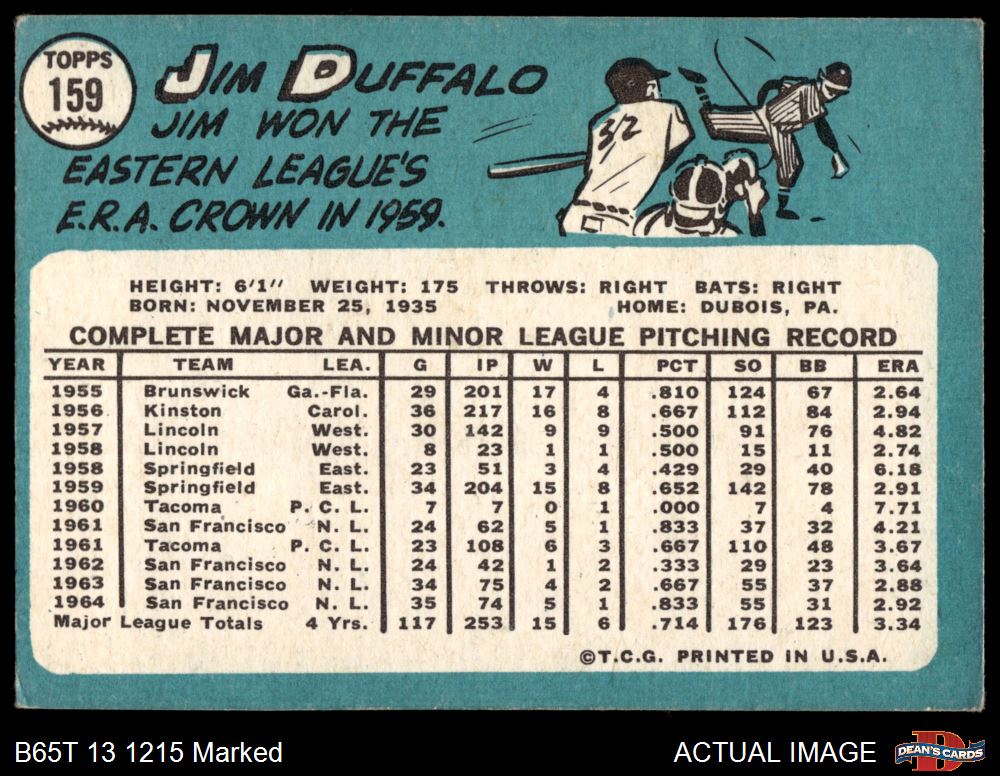 1965 Topps #159 Jim Duffalo Front Thumbnail