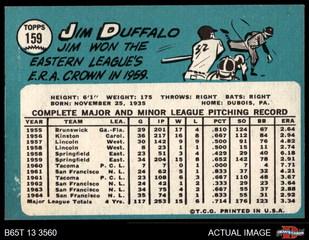 1965 Topps #159 Jim Duffalo 5 - EX