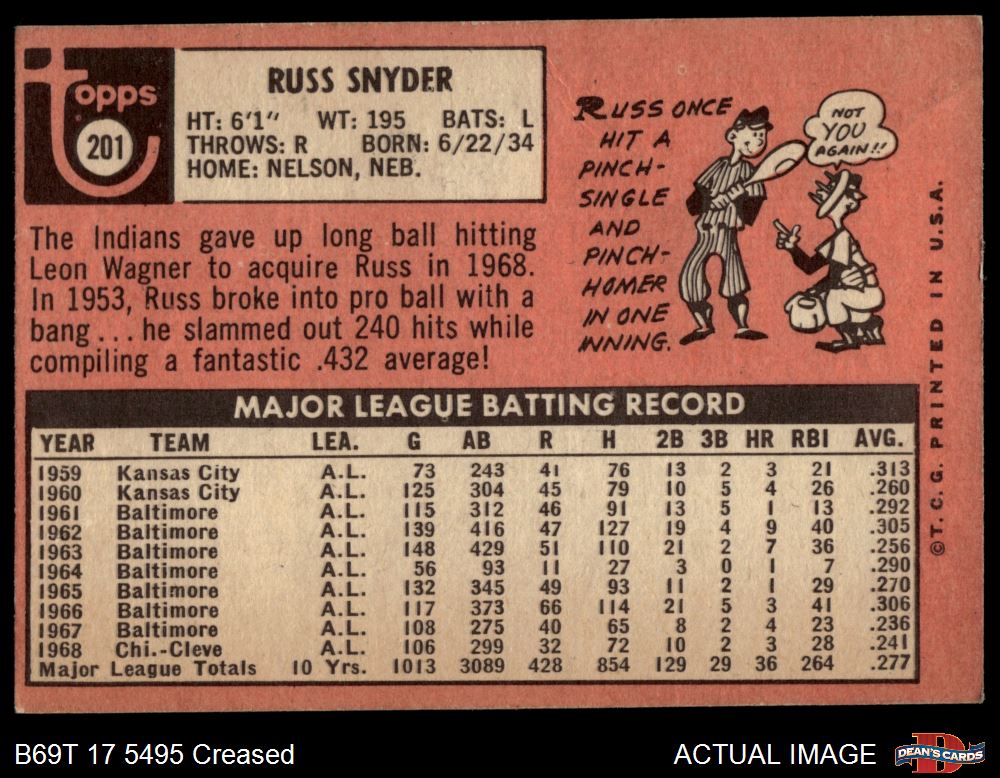 1969 Topps #201 Russ Snyder 2 - GOOD
