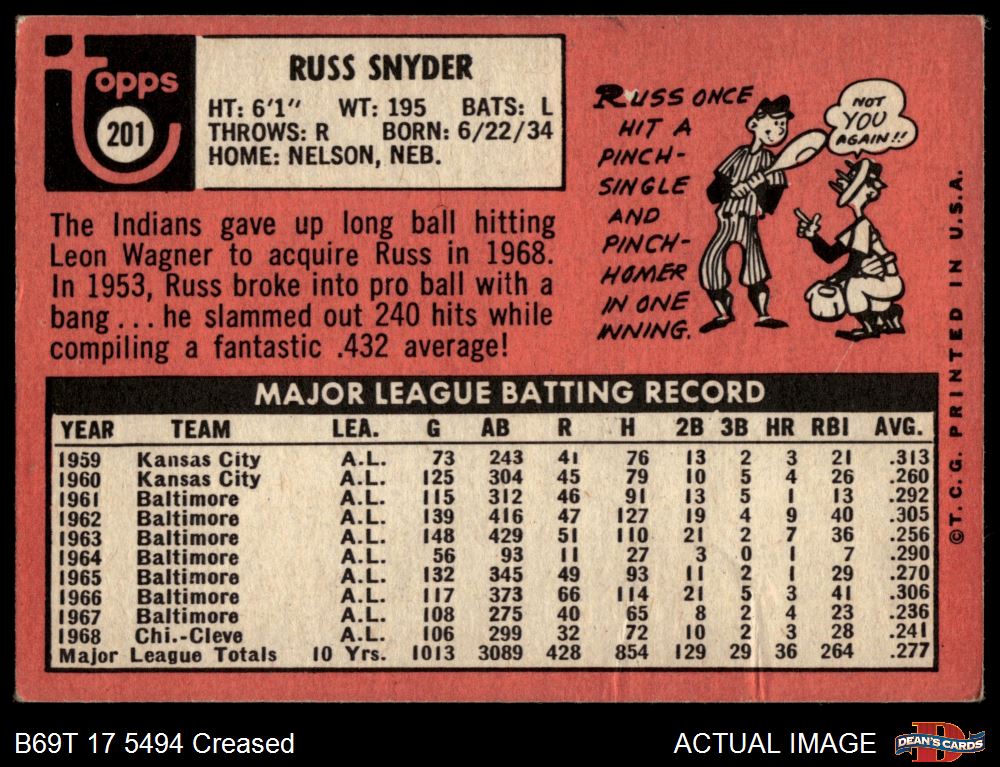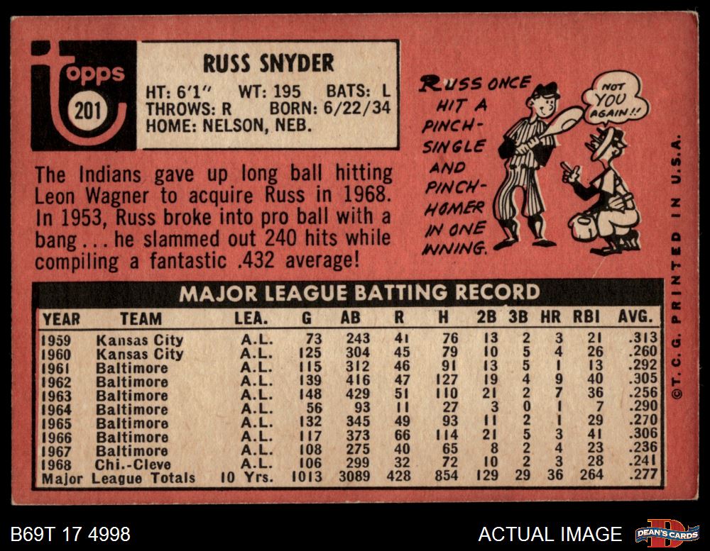 1969 Topps #201 Russ Snyder Front Thumbnail
