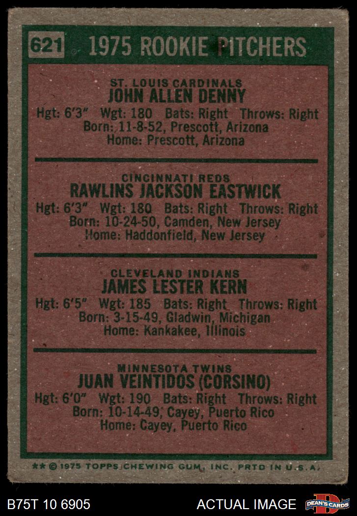 1975 Topps #621 - John Denny / Rawly Eastwick / Jim Kern / Juan Veintidos Rookie Pitchers 3.5 - VG+