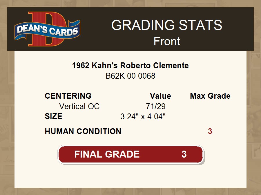 1962 Kahn's Roberto Clemente Front Thumbnail